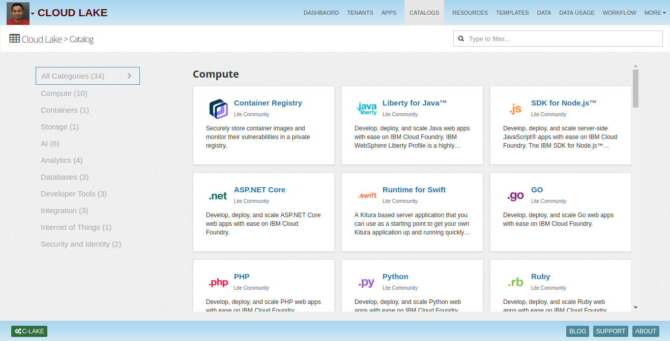 Cloud lake Provides all categories catalog to the user, some of categories are: