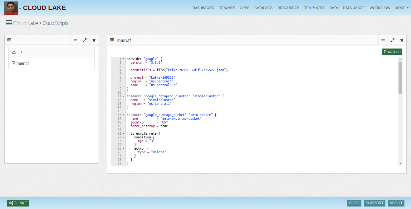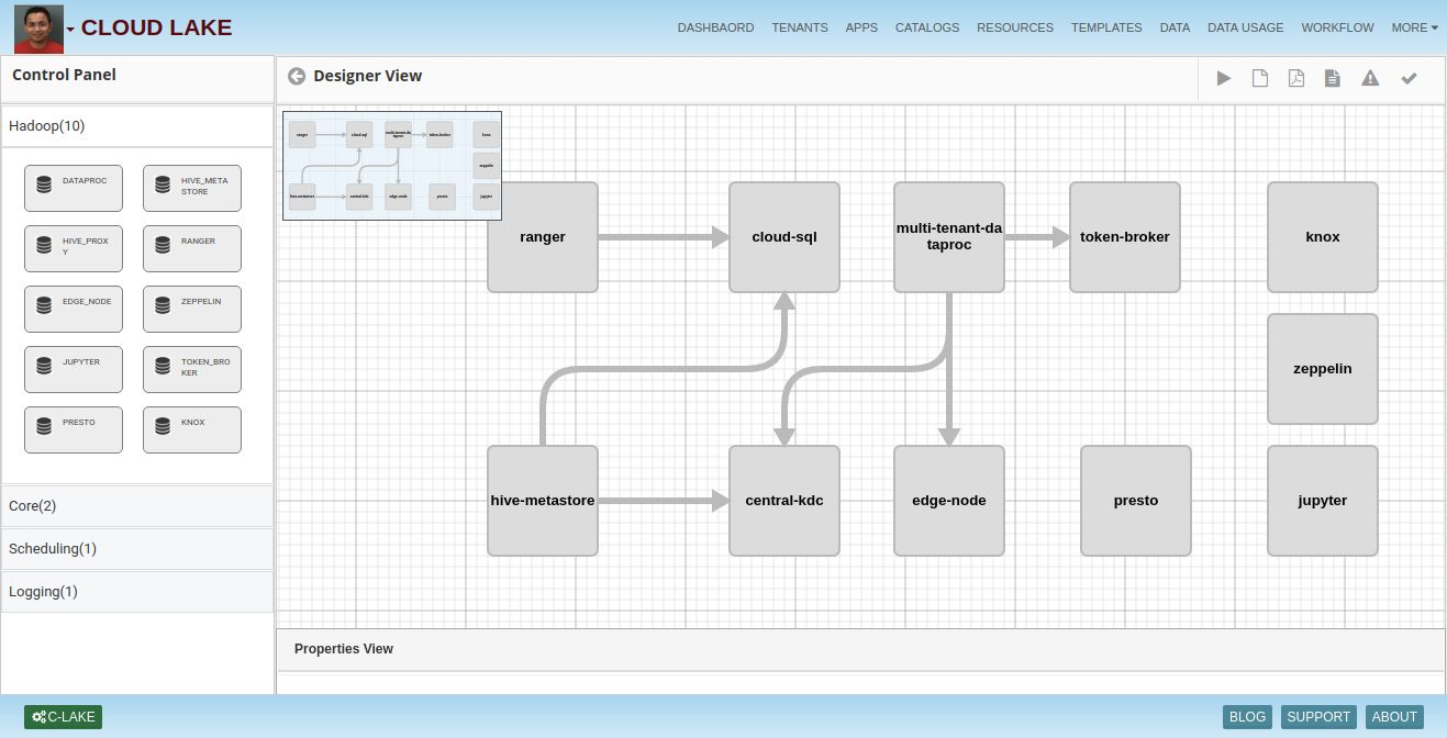 Cloud Lake allows provisioning of secure entrprise data lake easy on different cloud platforms like AWS, GCP and Azure. Designer allows drag and drop of components to design the data lake. Operations team can deploy the components from the designer tool. Cloud Lake solution hides the complexity of building enterprise data lake solution by plumbing different services together seamlessly.