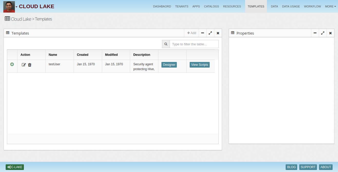 Cloud lake designer allows you to create template, you can customize template, access script and designer.
