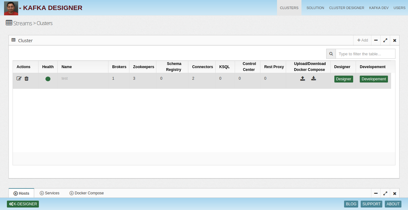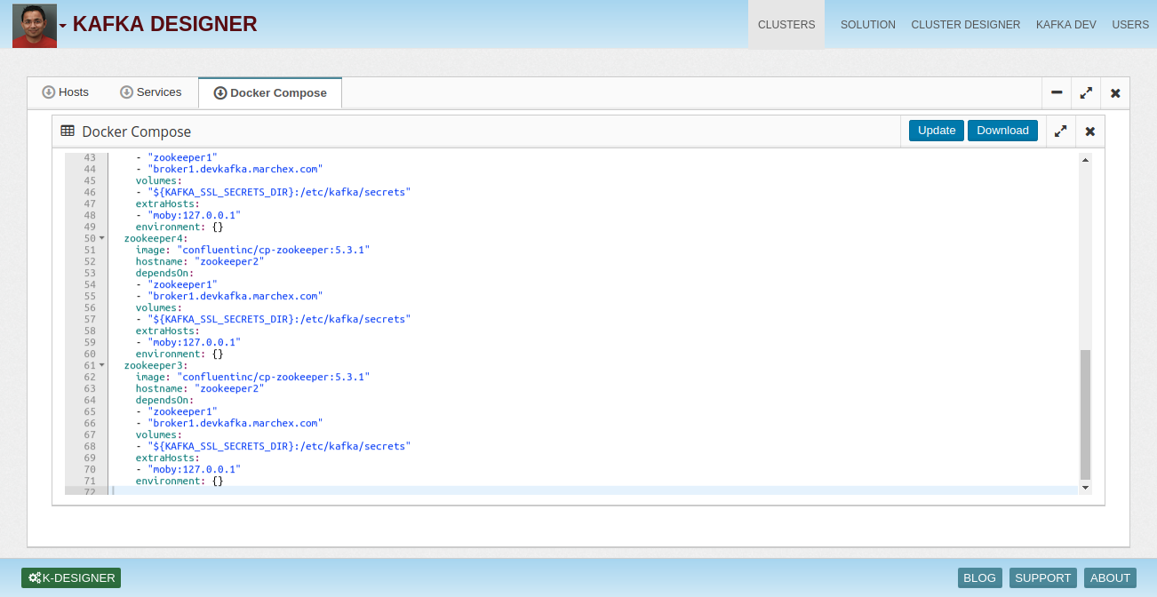 Kafka Designer allows you to generate Docker compose blueprint to mimic your other environments so your developers can easily develop consistent apps.