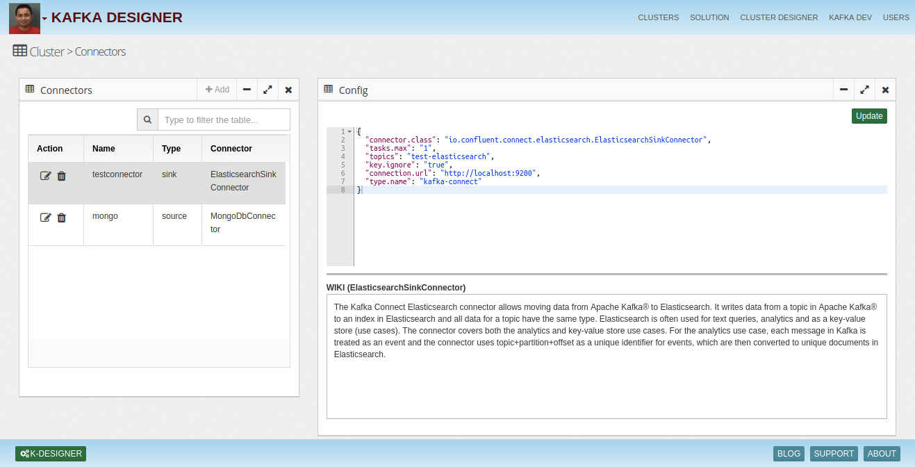 Kafka Designer allows you to create connectors depend upon type (sink or source) with default config.
