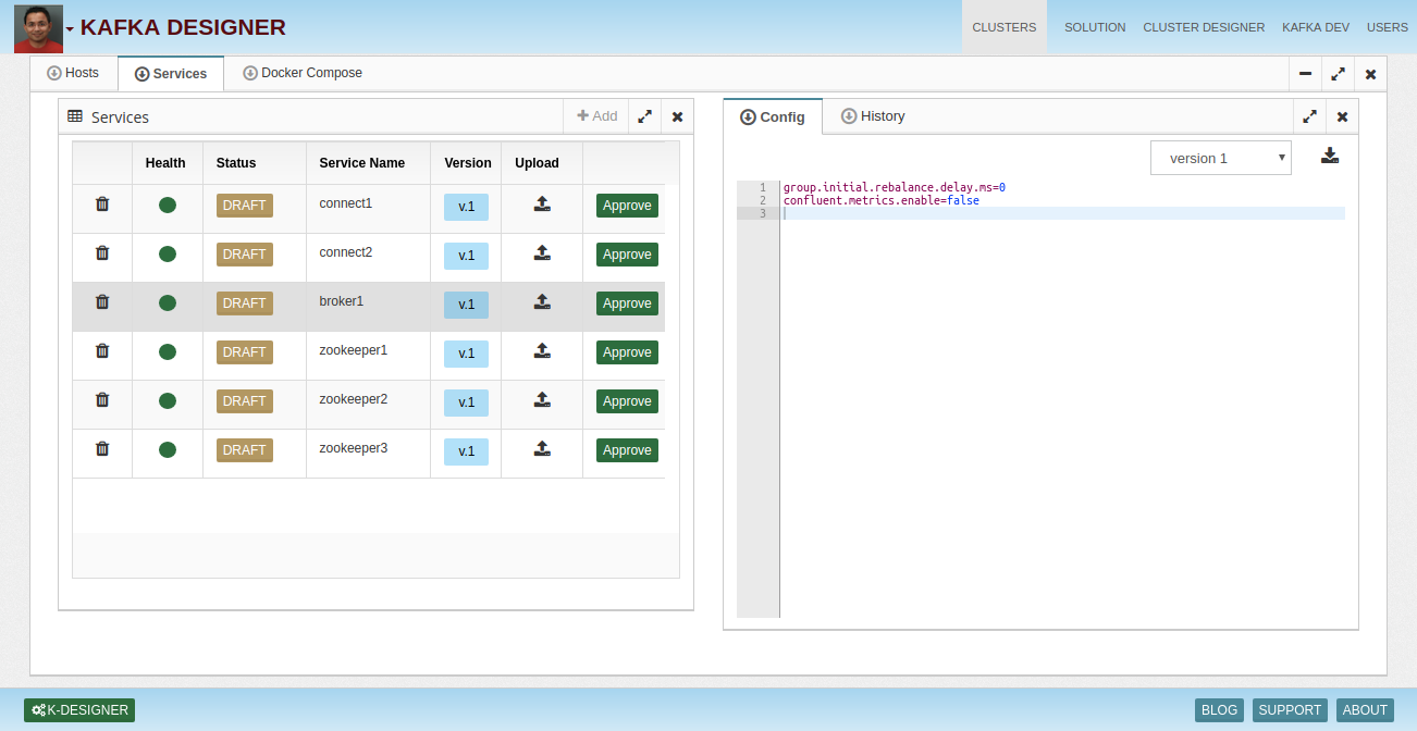 Upload your configuration files. Kafka designer will suggest changes and you can download latest configuration files.
