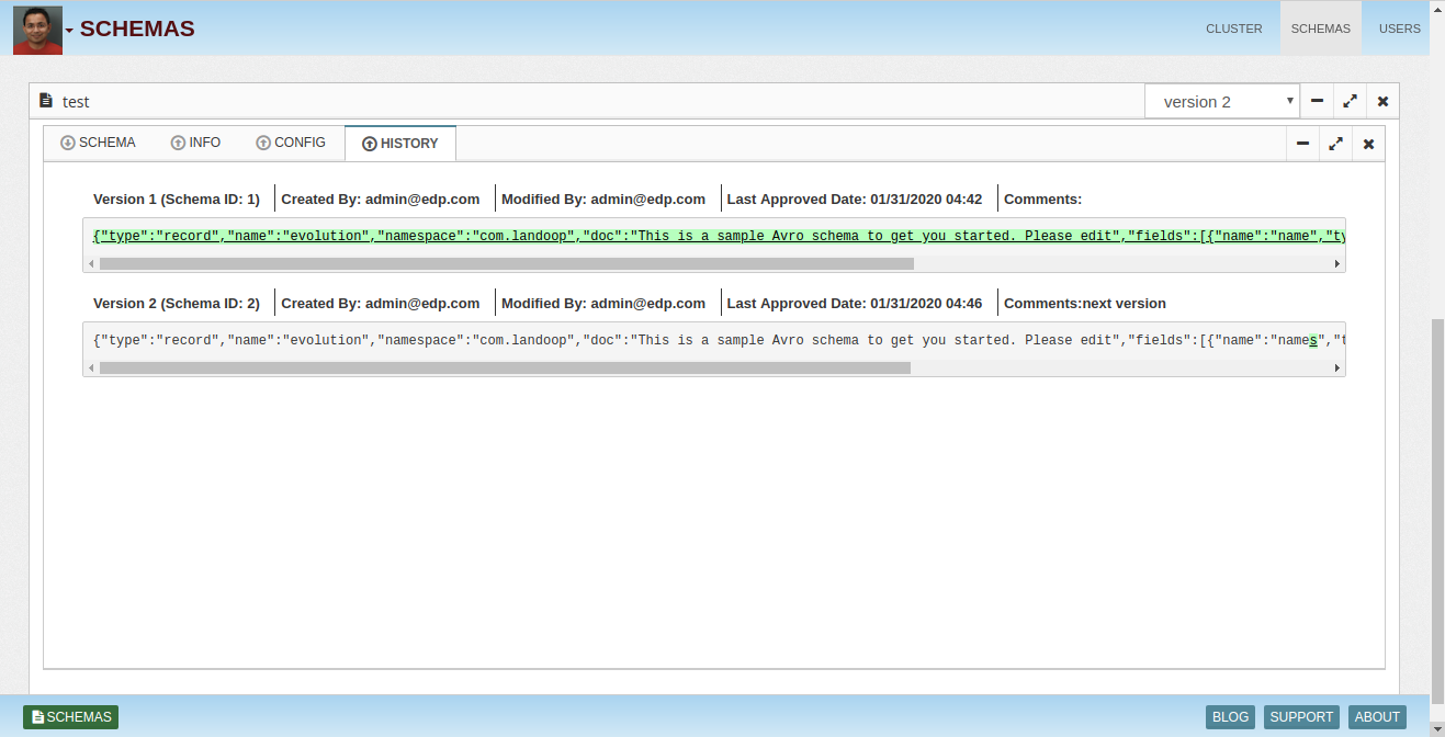 Schema management - Enterprise wide schema management Create, update and maintain schema hierarchies Audit trail of schema changes Validate and test compatibility Schema designer Data catalog integration Schema management allows admins